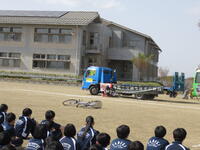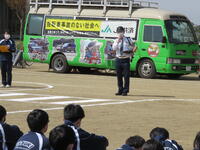 2023年4月14日 18時41分本日の5・6校時に、交通教室を実施しました。今回は、プロのスタントマンに実際の交通事故を再現していただくのを見て、その怖さを感じてもらうスケアード・ストレイトという学習方法を取り入れて行いました。始めに、校長が話をした後、主催者であるJA東西しらかわの稲川洋様にご挨拶をいただき、続いて、白河警察署交通課の厚海敏希様に自転車事故の現状や自転車安全利用5則などについてのお話をいただきました。その後、プロのスタントマンによる交通事故再現をしていだきました。全校生徒は、その様子を食い入るように見つめ、事故の怖さを感じているようでした。生徒のみなさんには、安全に対する意識を一層高め、登下校の自転車の安全運転に役立ててもらいたいと思います。最後に、全生徒を代表して、水戸陽葵君がお礼の言葉を述べて交通教室を終わりました。