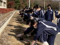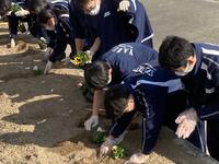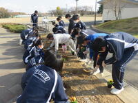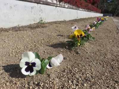 2022年11月19日 12時01分11月11日(金)に、環境美会委員会の生徒が校舎前の花壇にパンジーの苗を植えてくれました。きれいな紅葉を見せていた木々の葉も落ちて殺風景になっていた校舎周辺にも鮮やかな彩りが戻ってきました。生徒のみなさんありがとうございました。