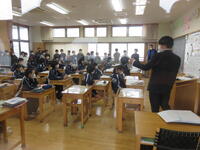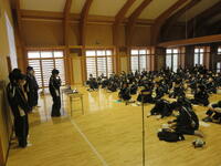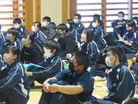 2022年12月6日 15時59分本日、来年春に本校に入学する6年生とその保護者の皆様対象に説明会を実施しました。6年生は、生徒会役員より中学校の生活の様子について説明を聞いたり、授業参観をしたり、部活動見学をしたりして2時間半ほどを過ごしていきました。寒い中、外の部活動見学もあったりして大変でした。かぜをひかないようにしてください。来年の春、元気なみなさんにまたお会いできることを楽しみにしています。