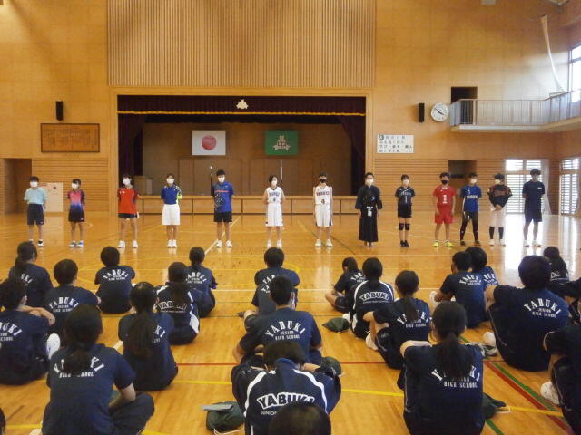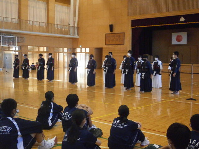 2022年9月9日 20時23分午前中は2日間にわたる中間テストが終わり、午後に東西しらかわ中体連新人総合大会と新人陸上競技大会に出場する生徒の激励会が行われました。新型コロナウイルス感染防止対策を徹底しての実施だったため、3年生は教室でリモートでの参加となり、選手も各部の発表ごとに入れ替わりながら行いました。各部からの選手紹介と決意表明の後、生徒会長から「勝つことも大事ですが、今の実力をはかる大会であることを意識しながらがんばってください。」との激励の言葉がありました。そして選手を代表して野球部主将から「この応援を力に変えて、矢吹中の代表として誇りを持ってプレーし、優勝目指してがんばってきます。」という力強いお礼のことばがありました。最後に吹奏楽部4名による応援歌の演奏があり、選手の士気を高めてくれました。