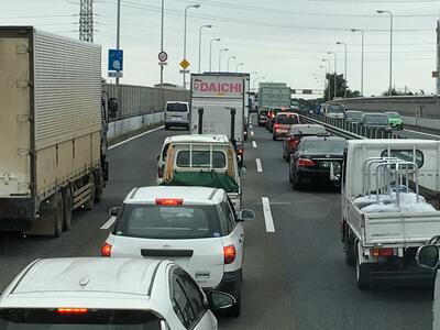 2022年9月15日 09時40分中央自動車道で八王子を過ぎ、石川サービスエリアを順調に出発すると間もなく、ご覧の渋滞。予定どおり着くかな…?