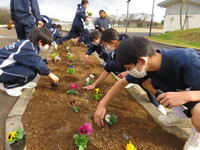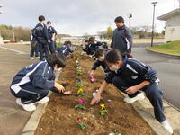「冬の間も校舎に彩り添えて」生徒会環境美化委員会による花植活動