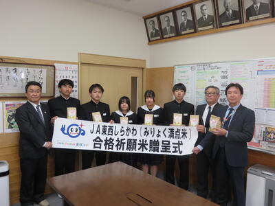 「合格祈願満点米を食べて全員合格だ!」JA東西しらかわより受験生へブランド米の贈呈式