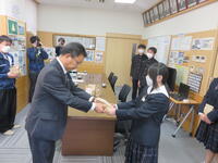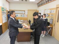 2023年12月8日 12時40分今年度国税庁が実施した「中学生税についての作文コンクール」において本校の喜多山莉帆さん(2-2)が、「東北地区納税貯蓄組合連合会会長賞」を受賞しました。東北地区で2位という大変素晴らしい成績での受賞です。この表彰のため7日(木)に白河税務署長の五傳木達夫様が来校され、喜多山さんに直接賞状と副賞を手渡してくださいました。喜多山さんも「ありがとうございました。また、あらためて税の大切さについて考えてみるきっかけにしたいと思います。」とお礼の言葉を伝えました。受賞おめでとうございます。