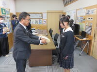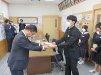 「高い評価をいただき、立派でした」中学生税に関する作文賞状伝達式