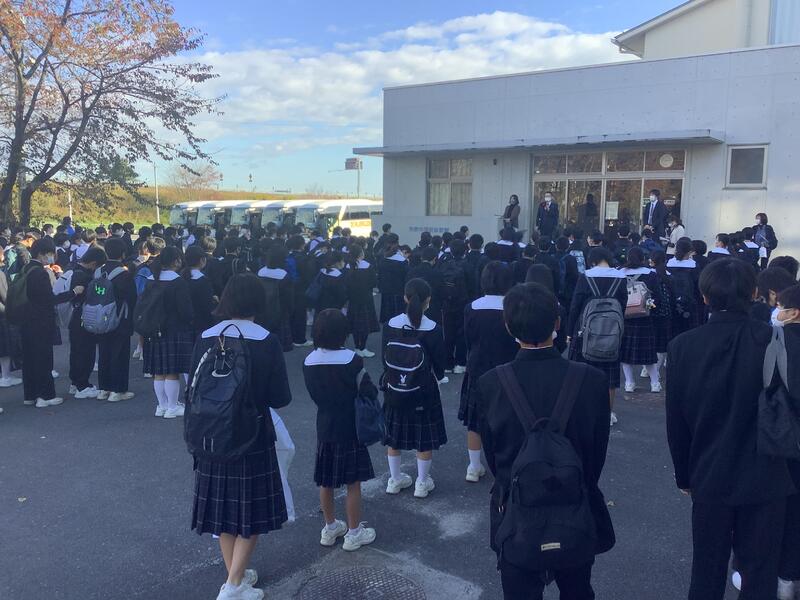 帰校式は学校では行わず、バス内で行います。生徒はバス下車後、すぐに下校となります。