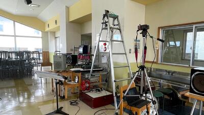 昨年度はハイレゾの高密度録音という手法で放送しましたが、今年度は一歩進んで「原音ライブ」でした。マイクで収録した音をそのまま放送に直結して流すという壮大な計画。なんと、演奏場所と放送室を直結するのに、ある先生が100mのケーブルを用意したのでした・・・。どんな音だったのでしょう? 結果は、はるかに「いい音」だったようです。(今回は配信で送り出す側にいたので、配信関係者は配信された音を聞けなかったのですね。)