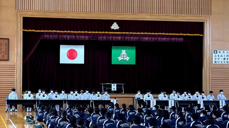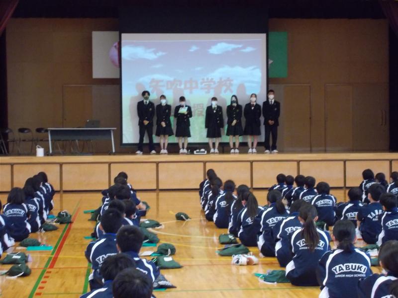 2021年5月27日 08時51分令和3年度の生徒総会が開催されました。今年度は体育館を会場に1年生が総会に参加し、2・3年生は教室からリモートで参加する形としました。