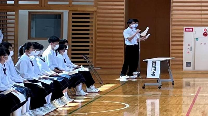 審議では、専門委員会や部活動などへの質問や意見が寄せられ、1年生からも代表質問を行いました。