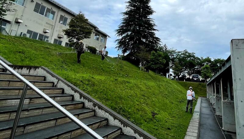 2021年6月28日 18時00分心配された雨も作業開始前には上がり、予定通り除草作業を行うことができました。奉仕作業に参加をいただいた皆様、ありがとうございました。草刈り機と草むしりの人海戦術により、校地が一気に美しくなりました。矢吹中学校は校地も広く、梅雨の時期は伸びる草と除草作業の勝負になります。併せて、奉仕作業をしながら校地内の階段や柵、設備などの点検も行っていただきました。生徒が活動する場所に危険が無いかどうか、引き続き見てまいります。お気づきの点がありましたら、学校までお知らせ頂ければ幸いです。