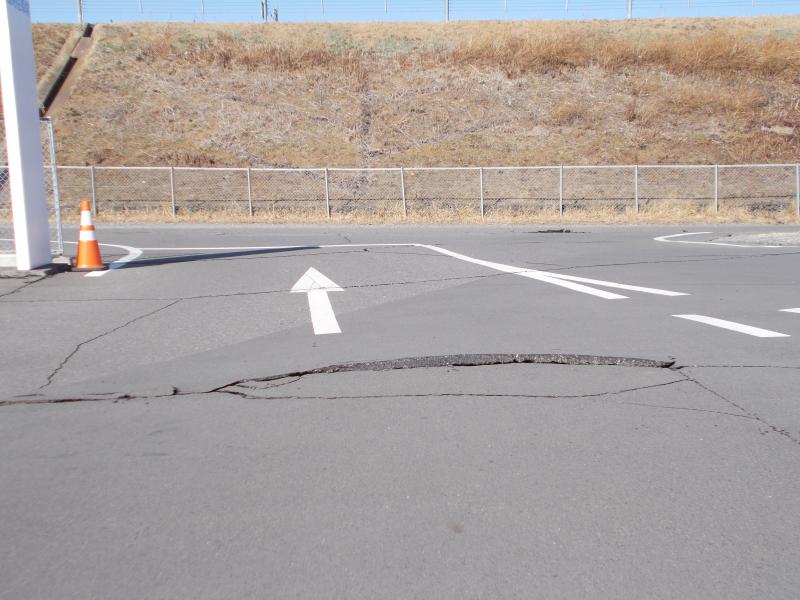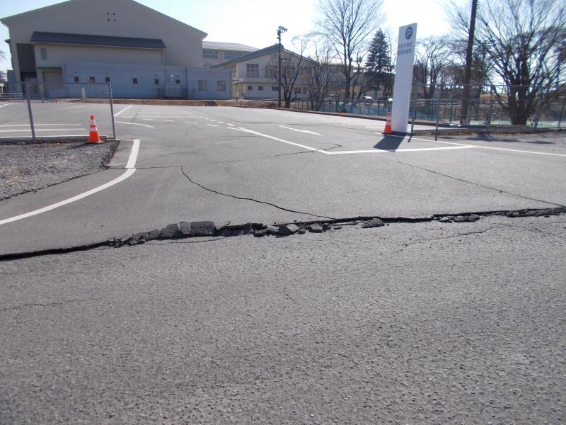 2021年2月14日 14時22分土曜日の地震により、生徒の送迎時に使用している駐車場に亀裂や段差が生じています。コーンを置き、目立つようにしてありますが、けがや自家用車の破損につながる可能性もありますのでスピードを落として通行するなど、十分に注意を払っていただくようお願いいたします。