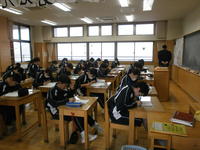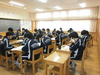 2020年1月10日 14時46分今日の6校時は全校で英語のスペリングコンテストに取り組みました。基礎的な英単語、連語、文型のテストです。合格点は80点。授業最初の15分が練習で、残りがテスト本番でした。ひたむきに取り組む姿が立派です。今まで練習を重ねてきた成果を出してください。