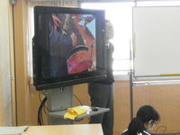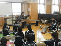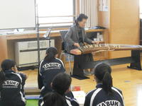 2020年1月14日 12時00分町内に在住し、毎年、1年生に箏の指導をしてくださる平賀先生にお越しいただきました。音楽科では基本的な指導を行っていますが、その補充指導・追指導を平賀先生にしていただきました。平賀先生が演奏している手元をタブレットで撮影し、大きなテレビ画面で見て確認できるように工夫されていました。