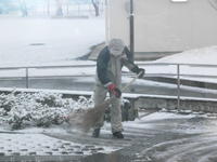 2020年1月28日 14時08分昨日からの天気予報で、今朝は大雪になるかも知れないと心配していましたが、さほど雪は積もらず暖冬を裏付けるような天気でした。朝早く出勤してみると、用務員さんがすでに学校へ来ていて、階段や玄関先の雪かきをしてくれていました。滑って転倒することが無いように丁寧に竹箒で掃いてくれていました。感謝申し上げます。また、生徒達も雪や寒さに負けず元気に登校し、朝の運動も軽やかに行っていました。