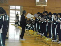 学校賞と皆勤賞は全員が登壇し、校長先生より表彰状を受取り、奨励賞については各部門の代表生徒が登壇し、