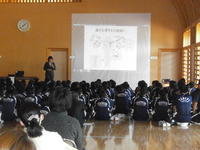2020年2月8日 13時55分本日、今年度最後の授業参観と保護者会が開催されました。寒風が吹く中、たくさんの保護者の方々が足を運んでくれました。一年間の学校へのご協力を含め、お忙しい中、時間を割いていただき感謝申し上げます。1,3年生は通常の授業参観、2年生は思春期セミナーというタイトルで外部講師をお呼びし、性教育の指導をしてもらいました。家庭ではなかなか話しづらい内容を、親と子が一緒にセミナーを受けることで、話題の共通点が図れるので良い機会だと思っております。是非、ご活用いただければ幸いです。
