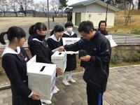 2019年12月11日 15時11分月曜日に生徒会の役員選挙が行われました。来年度に向けて3年生から1,2年生に生徒会役員のバトンが渡されます。体育館で立ち合い演説会が行われましたが、立候補者と応援演説者共に落ち着いて、堂々と述べることができました。矢吹中を更に良くするために・・・という内容が多く、どれも頼もしい演説でした。