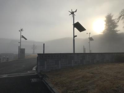 2019年12月11日 11時35分今朝は、濃い霧がかかり、その中に学校が浮かび上がるなど、とても幻想的な世界でした。霧の中、元気に自転車をこいでくる生徒も多く、車の送迎に甘えず頼らないところに感心しました。これから益々寒くなりますが、元気な登校を期待しています。