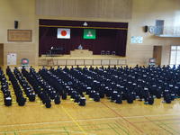 帰校式は学校では行わず、バス内で行います。生徒はバス下車後、すぐに下校となります。