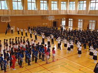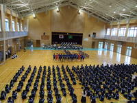 2019年6月25日 14時16分今週は、体育祭の週となっています。クラス対抗の体育祭ですが、各学年毎に開催日が違い、行う種目も違います。学年で考えた種目設定になっているのです。まず、2学年が今日、体育祭を実施しました。2学年の種目は、バスケットボールと長縄跳びです。各クラスで色の付いたハチマキを頭に巻き、クラスの団結を示しています。準備体操は、いつもと違い、音楽に合わせたリズム体操(?)で素早い動きがメインの体操でした。バスケットの試合前は、円陣を組み、心をひとつにします。試合が始まると会場は、割れんばかりの応援の声・声・声!保護者の方々も参観に来ていただき、盛り上がりを見せた体育祭になりました。