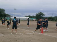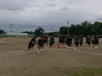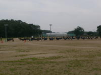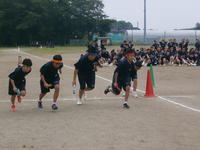 2019年7月1日 12時42分金曜日に雨で順延となった3年生の全員リレーが今日行われました。準備運動を行い、まず、足慣らしのために全員で校庭を1周。そして、いよいよ本番の学級対抗全員リレー。トラック1周が400mなので、100mずつバトンリレーをします。走るのが得意な人も、苦手な人も、みんな一生懸命走っていました。全員で走ることに大きな意味がありますね。声援の中、優勝は3年2組でした。
