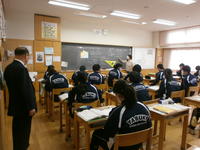 2019年1月30日 09時55分栗林教育長と教育委員会の舟木指導主事が学校を訪れ、学校運営状況や生徒の学習状況を見て