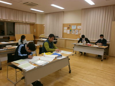 2019年2月7日 08時35分現在の時刻、夜7時。3年の先生方は、県立Ⅱ期の願書チェックをしています。チェックを