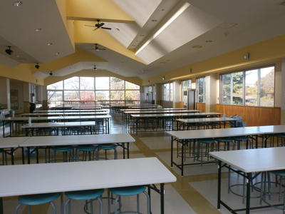 ランチルームですが、静かなランチルームを見渡すと、丸いす、一つ一つがしっかりとテー