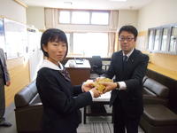 だきました。矢吹東支店の次長さんがおいでになり、代表生徒が受け取りました。