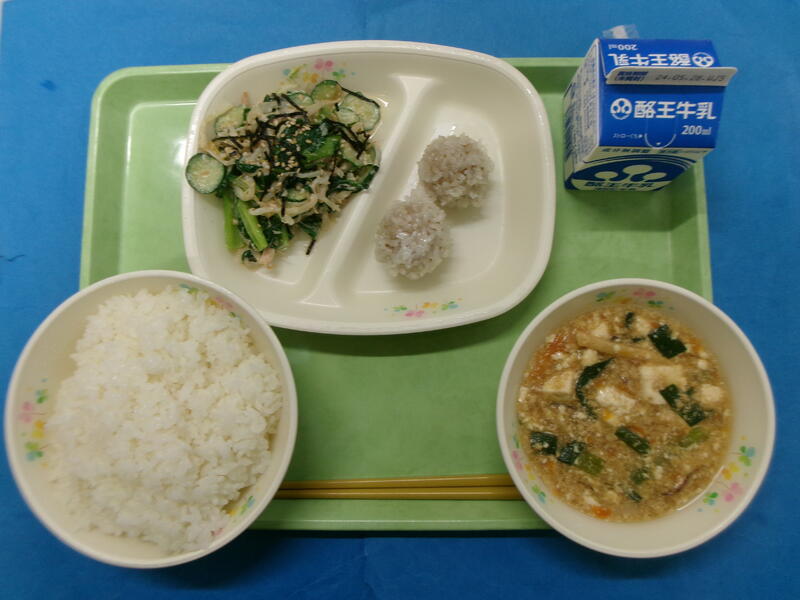 ごはん 牛乳 肉団子のもち米蒸し 華風あえ マーボー豆腐