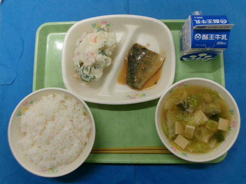 ごはん 牛乳 さばのみそ煮 ポテトサラダ 凍み豆腐のみそ汁