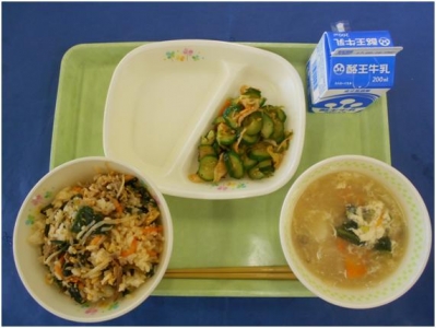 ビビンバ 牛乳 キムチきゅうり トックスープ