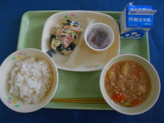ごはん 牛乳 納豆 キャベツのみそマヨあえ じゃがいものそぼろ煮
