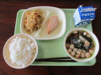 浜通りは「カジキの照り焼き」、中通りは「ひき菜炒り」、会津は「こづゆ」が献立にそろいました。お昼の放送で、給食委員の皆さんからも献立の特徴についてのお知らせがありました。明日は、会津の郷土料理がテーマでソースカツです。明日も楽しみですね。