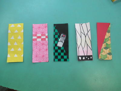 作業途中、図書室へ来た児童たちからは「このしおりが欲しぃ」「こんなのも作って~」と大盛況でした。