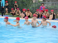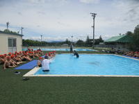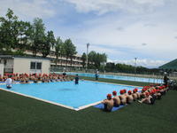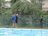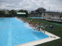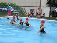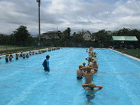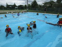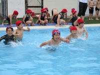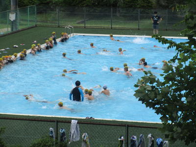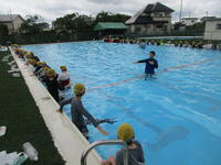 今日も梅雨の合間をぬって2年生がプールに入ることができました。低学年は水深が浅い小プールを使ってプールの学習を行います。今日は千葉先生もプールに入ってご指導くださいました。陸上も水泳の指導もできる、まさにスーパーウーマンだと思いました