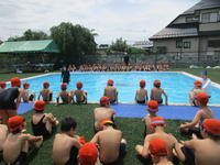 青空が出てきて気温が上がったのを逃さずに3年生・4年生・5年生・6年生がプールに入ることができました。先週・今週と天気が悪く気温も水温も上がらず「いつになったら入れるのか」と子ども達は気をもんでいました。着替えをして体育館でプールのきまりについて確認をして準備運動をしました。時々太陽も顔を出しますが、気温は24.5℃で水温は25℃でした。それでもシャワーを浴びてプールに入る時は思わず歓声をあげていました。今日はそれぞれの学年で基本的なプールでの学習をしました。久しぶりのプールでしたが体を大きく伸ばしてのびのびと泳いでいました。