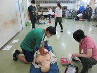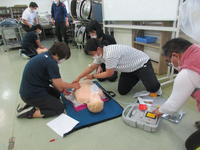 学校のプール学習がスタートしましたので、先生方で心肺蘇生法講習会を行いました。