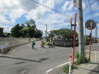学校近くの五差路付近も道路が狭く危険です。町で歩道を整備していただいたので視界もよく歩きやすくなりました。しかし下校の際は小針医院の前の交差点までは左側を通ると狭くて危険です。そこで五差路から左折する子ども以外は、アンブレスの前を横断して右側を歩行するように指導しました。今日も下校時に五差路に立って指導しました。「自分の命は自分で守る」態度を育てていきたいと思います。