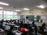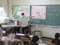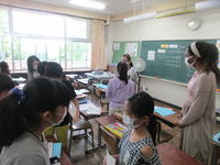 イングリッシュルームでは二人の先生方と子ども達がいつも笑顔で楽しく英語の学習をしています。外国語の学習は英語を学ぶだけではなく、外国の文化やコミュニケーション能力を学ぶことができます。今日は友達の誕生日を聞く、自分のほしい物を答えると言うことをゲームをしながら会話の練習をしました。日本語や普段の生活でちょっと照れてしまうことでも英語を使った会話なら抵抗はあまり感じないようです。楠先生はそれぞれの学級の雰囲気を大切にして楽しい授業になるように進め方を工夫してくださっています。