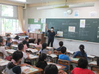 今日の朝、全校生が放送でプール開きの式を行いました。きれいなプールで今年も学習ができることに感謝するともにプール学習のめあてについて話をしました。学年の目標は、1年生「もぐる」→ 2年生「浮かぶ」→ 3年生「進む」→ 4年生「息継ぎで進む」→ 5年生「いろいろな泳ぎに挑戦」→ 6年生「長い距離・長い時間泳ぐ」を大きな目標にして自分のめあてをもつように、それが自分の命を守ることにつながるので頑張ってほしいと励ましました。新コロナウイルス感染症対策をきちん行い安心・安全の学習になるようにしていきます。体育の担当からは安全な学習のために3つの「あ」について、安心しない(油断しない)、慌てない、水をあなどらない(怖さが分かる)の話がありました。