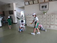 昨日の顔合わせと打合せを終えて今日から縦割り清掃がスタートしました。1年生は各学級で雑巾がけや雑巾絞りの練習をしていましたので戸惑わずにできていて立派でした。6年生も1年生に丁寧に教えていてやさしさが感じられました。しかし、教えることは難しいです。まず自分がしっかりできていること、1年生の気持ちを想像できること、笑顔でほめながら教えることなど「教えることは学ぶこ」とです。
