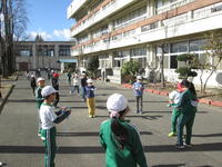 2時間目の休み時間になると、多くの子ども達が玄関前のアスファルトでなわとびをしています。