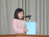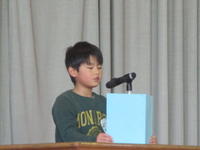 今日の終業式では2年生の二瓶泰暉さん、4年生の薄葉しおんさん、6年生の吉田心華さんががんばったことの発表をしました。堂々とした態度で自分の思いを発表してとても立派でした。