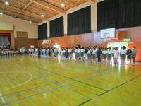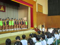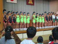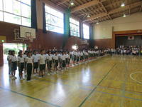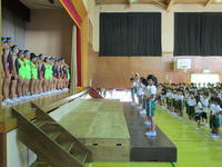 10月1日(火)は西白河小学校陸上競技会が行われます。今日は選手壮行会を行いました。一人一人が努力したことを発揮できるように自信をもつこと、チームワークでお互いの力を励まし合うように話をしました。今日も運営委員会の応援団が力一杯応援の声を上げて心を込めて全校生で大きな声でエールをおくることができました。部長の經悠愛さんが全力でがんばることを誓い、お礼の言葉を述べました。「みんな、がんばれ!!」