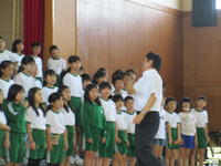 本日、芳賀徳也先生の合唱指導がありました。 芳賀先生には非常勤講師として、これまでも音楽会に向けての4・5・6年生の合唱指導をしていただいています。歌詞を大切にして、その情景を思い浮かべる、その時の気持ちを歌にこめて表現することが大切だということでした。それを芳賀先生らしい言葉や働きかけで子ども達が生き生きと活動する楽しい授業でした。目標は4年生が天真爛漫な「天使の歌声」5年生がきらきらと輝く「ダイヤモンドの歌声」6年生が美しく深みのある「真珠の歌声」ということでした。練習を重ねて目標に向けて頑張っていきたいと思います。音楽会での姿を期待してください。