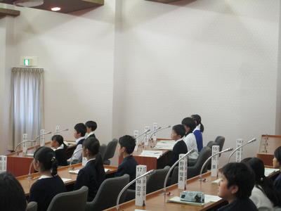 本日、矢吹町議会議場で令和元年度子ども議会が行われました。善郷小学校からは6年生の代表の6名の議員が参加、傍聴席では6年生全員が議場の様子を見学しました。子ども議員が代表質問をして町長さんや教育長さんがそれに対して答弁をしました。