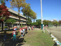 <スポーツの秋>明日から下り坂の天気ですが、来月の持久走記録会に向けてマラソンタイムも始まり元気に全校生で走っています。