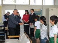 昨日校長室で農業の学習に使用する資料と本(ちゃぐりん)の贈呈式がありました。JA東西しらかわの理事長さんから5年生の代表に手渡されました。社会科や総合的な学習の時間に活用していきたいと思います。農業を通して人と自然とのつながり、経済のつながりなどについて視野を広げてほしいと思います。立派な態度で受取り大きな声でお礼を述べることができました。