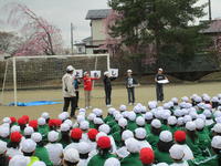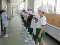 地震では物が「落ちてこない」「倒れてこない」「動いてこない」場所に逃げること。火災では「煙を吸わないようにする」ことを話しました。先生の指示をよく聞くことと「自分の命は自分で守ること」を確認しました。